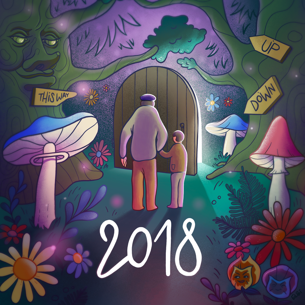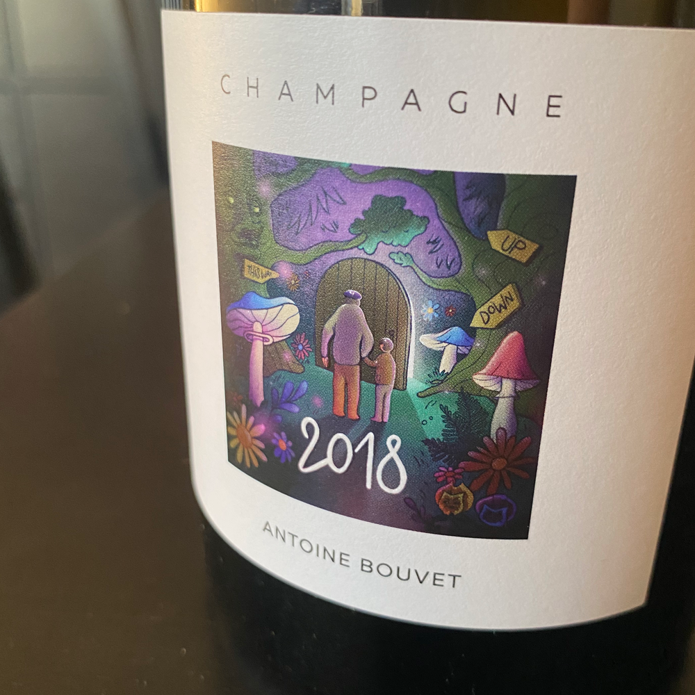 Réalisation d'étiquette illustrée pour la cuvée Millésime 2018 d'Antoine Bouvet, vin de Champagne en biodynamie.