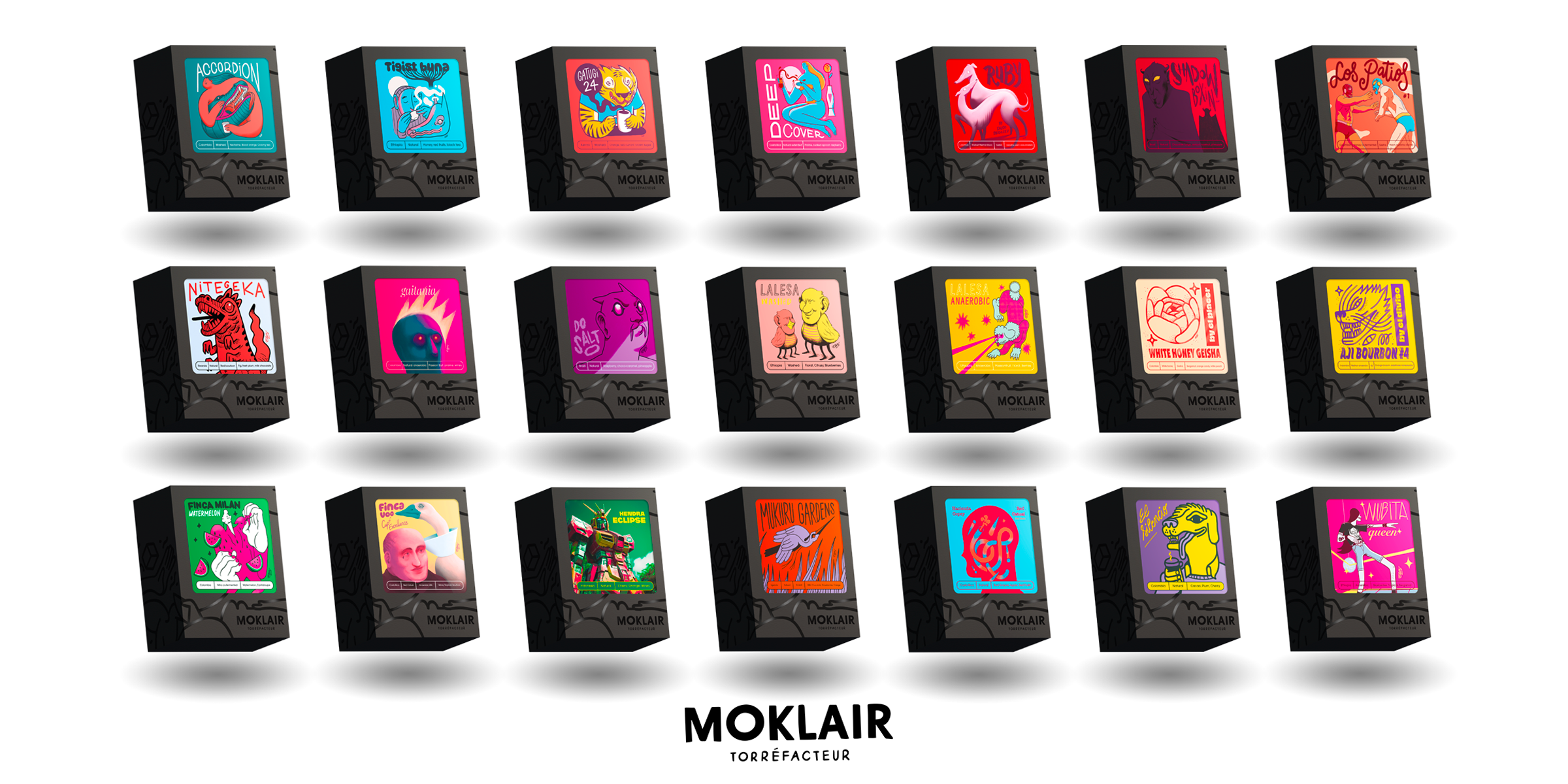 Depuis leur création en 2021, nous accompagnons fièrement les cafés MOKLAIR et leur torréfacteur Kévin DAVID, vainqueur aux nombreux titres dont celui du meilleur Barista de France, dans la réalisation de leur identité visuelle.