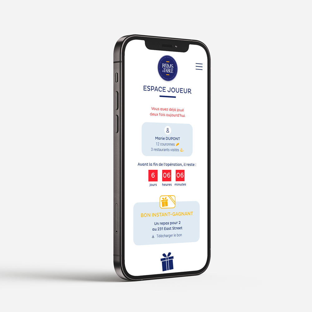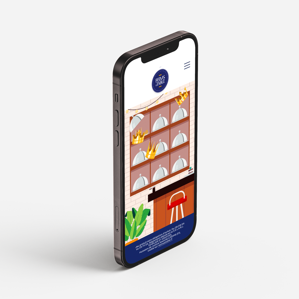 Réalisation d'une webapp pour REIMS à TABLE, concours organisé par Reims Tourisme et Congrès, adressé aux commerces de bouche de la Ville de Reims. Ce jeu est accessible à toustes et permet d'élire les meilleurs restaurants de la Ville, afin d'augmenter leur visibilité et développer l'économie locale.