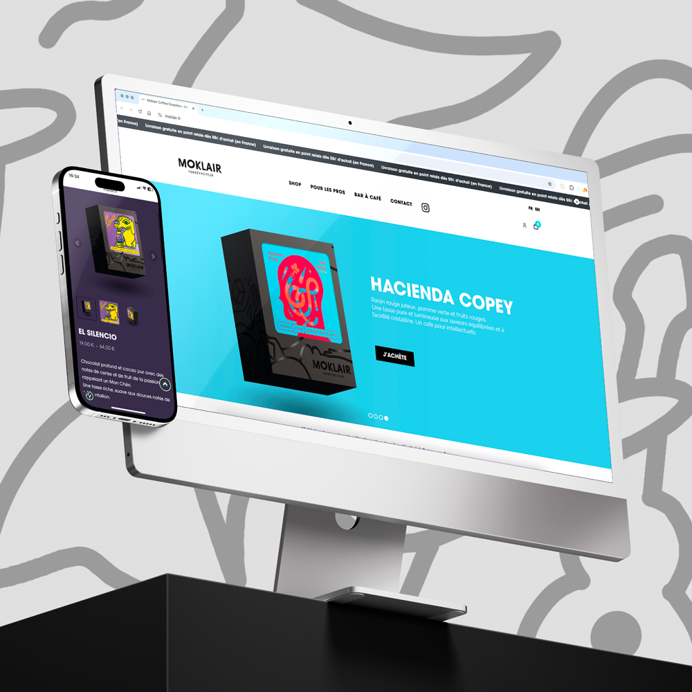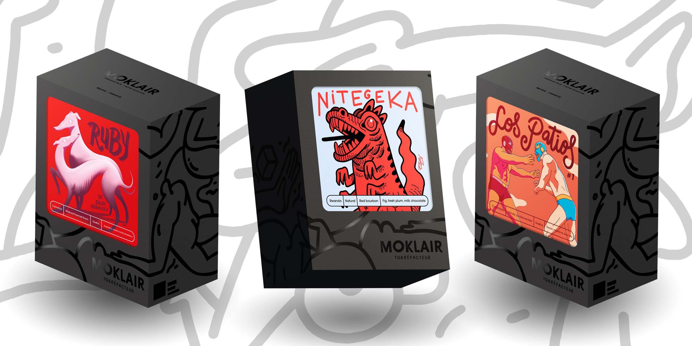 Depuis leur création en 2021, nous accompagnons fièrement les cafés MOKLAIR et leur torréfacteur Kévin DAVID, vainqueur aux nombreux titres dont celui du meilleur Barista de France, dans la réalisation de leur identité visuelle.